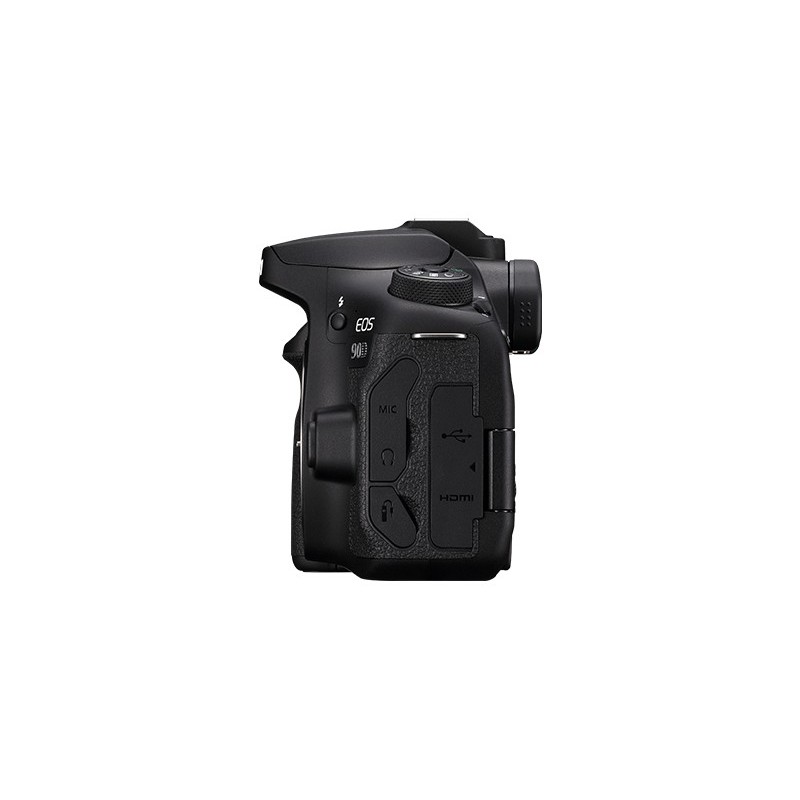 Canon EOS 90D. Tipologia fotocamera: Corpo della fotocamera SLR, Megapixel: 32,5 MP, Tipo sensore: CMOS, Risoluzione massima immagine: 6960 x 4640 Pixel. Sensibilità ISO (max): 256000. Velocità massima dell'otturatore della fotocamera: 1/16000 s. Wi-Fi. Tipologia HD: 4K Ultra HD, Risoluzione massima video: 3840 x 2160 Pixel. Dimensioni diagonale schermo: 7,62 cm (3"), Touch screen. Tipo di mirino: Elettronico. PictBridge. Peso: 701 g. Colore del prodotto: Nero