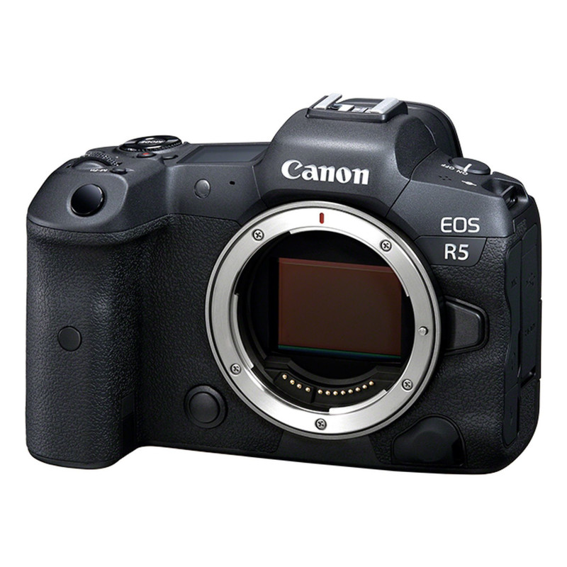 Canon EOS R5. Tipologia fotocamera: Corpo MILC, Megapixel: 45 MP, Tipo sensore: CMOS, Risoluzione massima immagine: 8192 x 5464 Pixel. Sensibilità ISO (max): 51200. Velocità massima dell'otturatore della fotocamera: 1/8000 s. Wi-Fi. Risoluzione massima video: 8192 x 4320 Pixel. Dimensioni diagonale schermo: 8 cm (3.15"). Tipo di mirino: Ottico. Peso: 650 g. Colore del prodotto: Nero