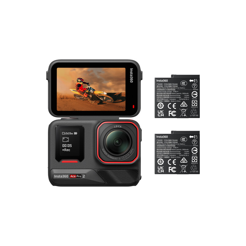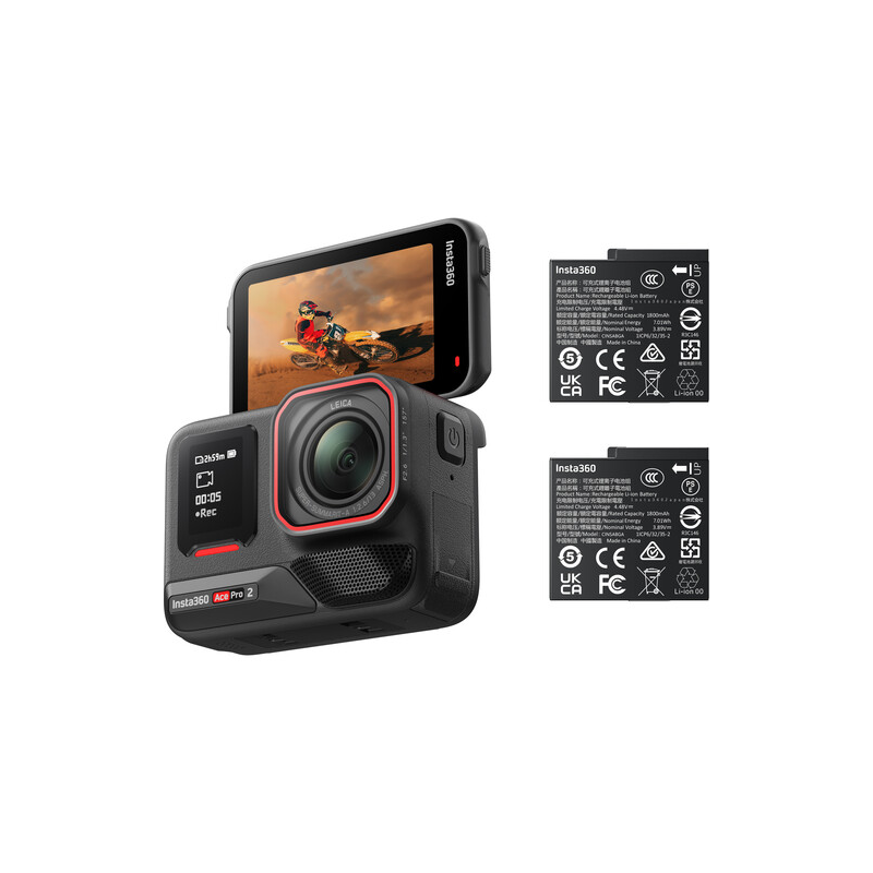 Insta360 Ace Pro 2 Action Camera Standard Bundle, Sensore CMOS da 1/1,3", acquisizione HDR attiva, 2x Batterie 1800mAh - CINSBBGA
