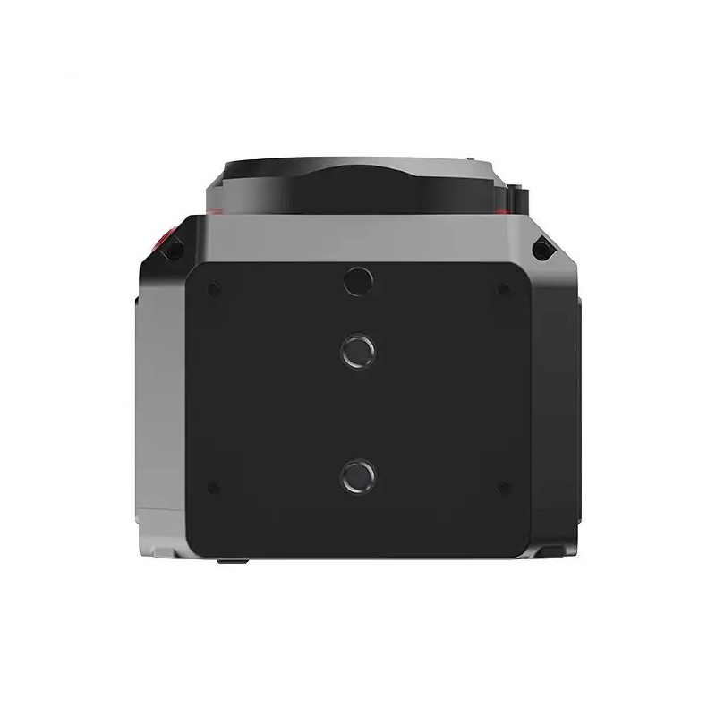 Realizzato in alluminio per resistenza e dissipazione del calore Ci sono nove fori di montaggio filettati attorno allo chassis esterno Marcatura del piano del sensore per misurazioni accurate della distanza Alimentazione da adattatore CA / CC opzionale o batterie serie LP-E6 opzionali Attacco MFT attivo