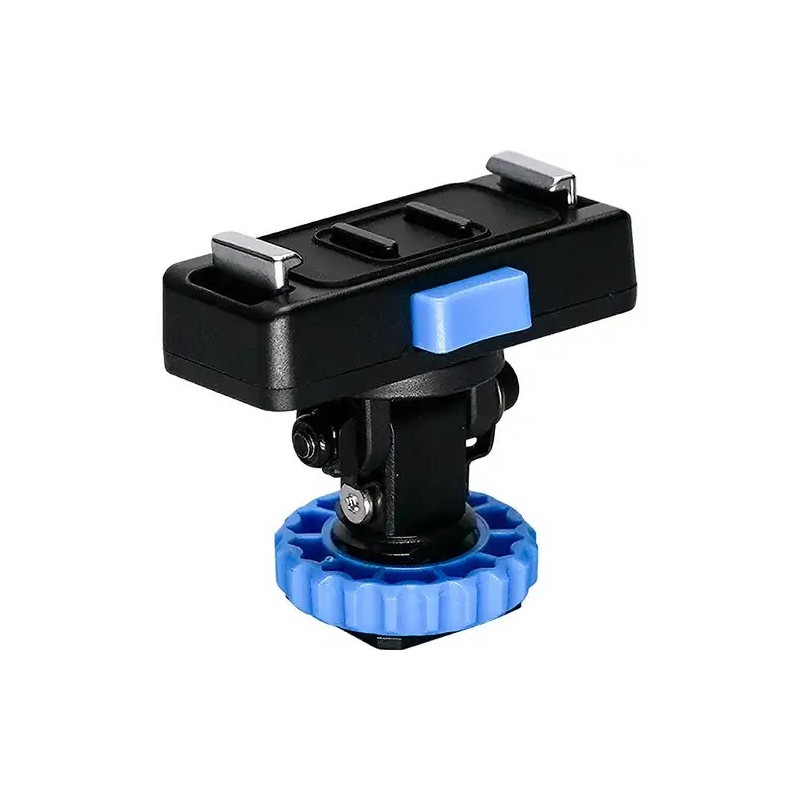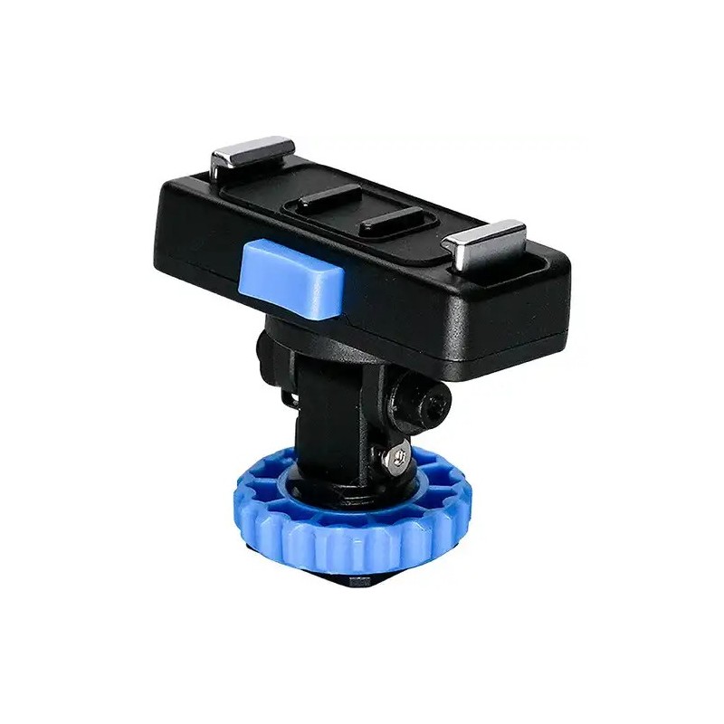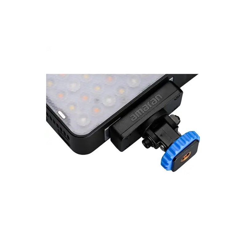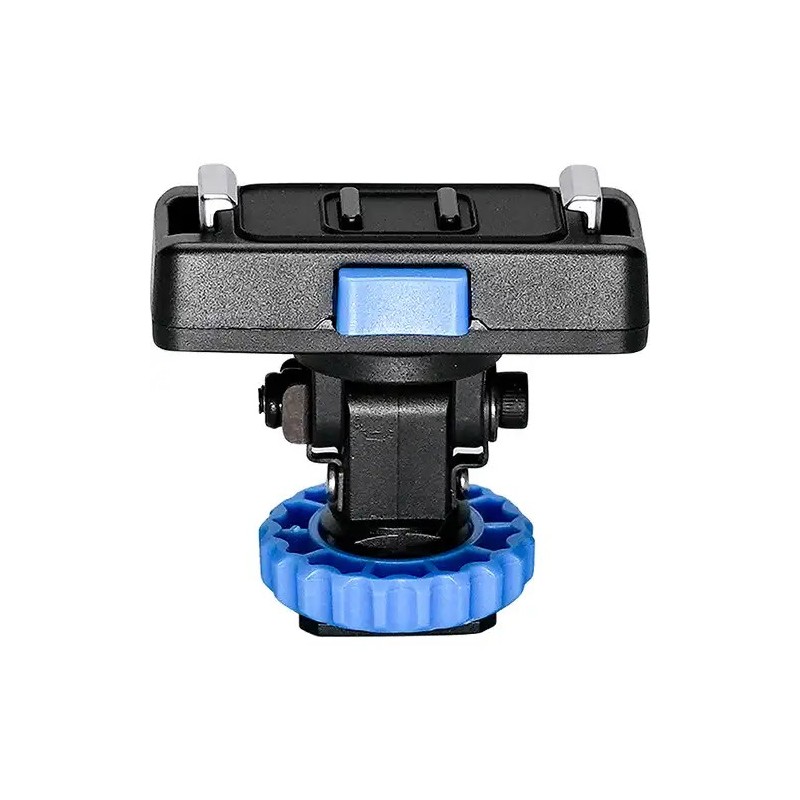 L'adattatore con blocco per slitta a contatto freddo permette di montare facilmente la luce su qualsiasi fotocamera con shoe mount, mentre una filettatura da 1/4"-20 alla base del dispositivo consente di montarla sulla maggior parte degli stativi per luce.