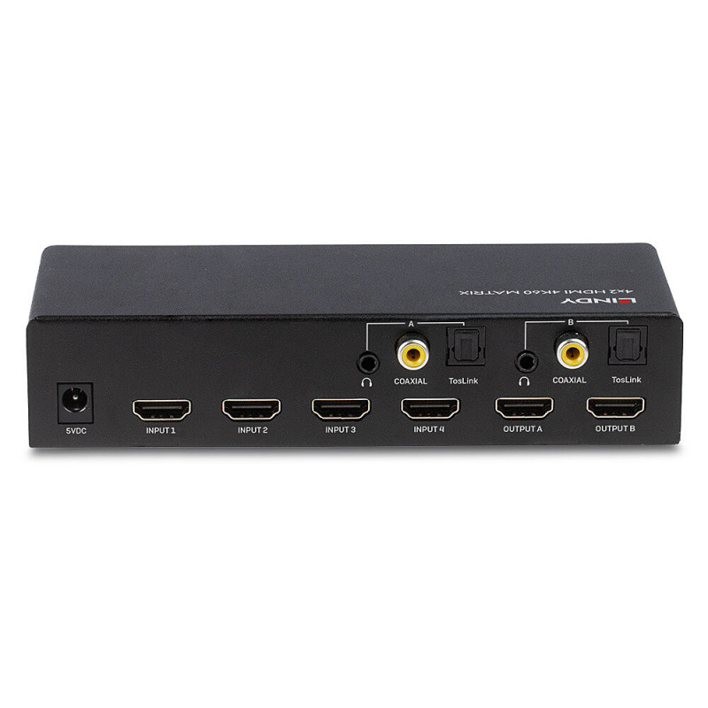 Questa matrice HDMI 4K60 4x2 è una soluzione ad alte prestazioni per la distribuzione di contenuti da più sorgenti a due display.