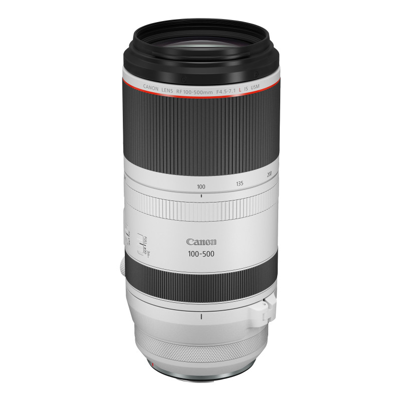Canon Obiettivo RF 100-500mm F4.5-7.1L IS USM. Componente per: SLR, Struttura lente: 20/14, Tipo di lente: Teleobiettivo zoom. Marche compatibili: Canon, Ingrandimento massimo: 0,33x, Compatibilità: EOS R EOS RP EOS Ra EOS R5 EOS R6 EOS R3. Colore del prodotto: Nero, Bianco. Diametro: 9,38 cm, Dimensione filtro: 7,7 cm, Lunghezza: 207,6 mm