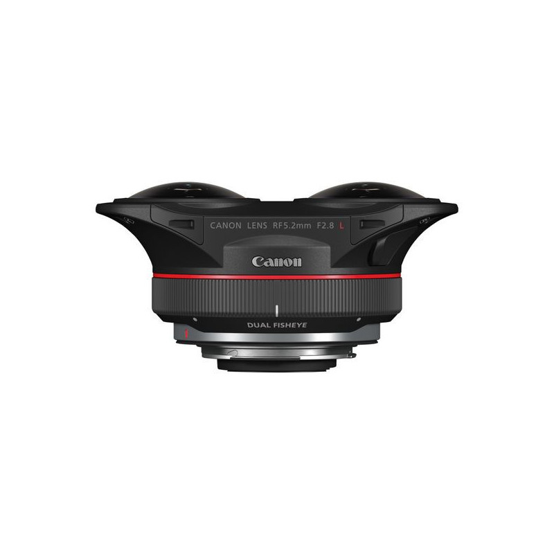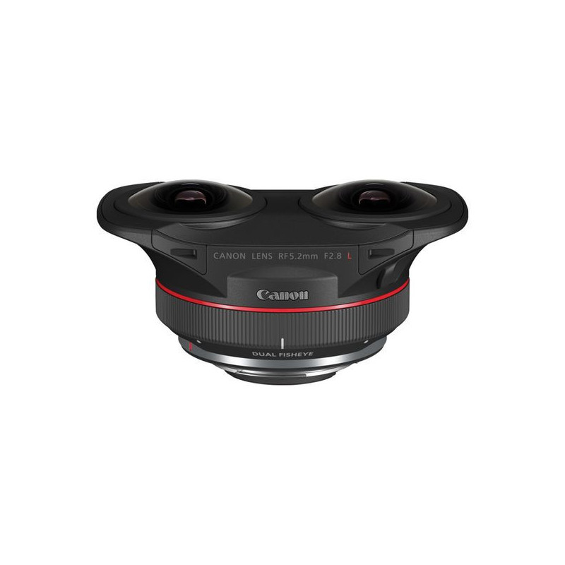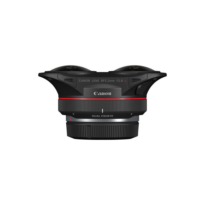 Canon RF 5.2 mm f2.8L Dual Fisheye. Componente per: SLR, Struttura lente: 10/12, Tipo di lente: Obiettivo fish-eye ampio. Marche compatibili: Canon, Ingrandimento massimo: 0,03x, Caratteristiche del rivestimento delle lenti: Rivestimento Super Spectra. Colore del prodotto: Nero. Lunghezza: 53,5 mm, Peso: 350 g