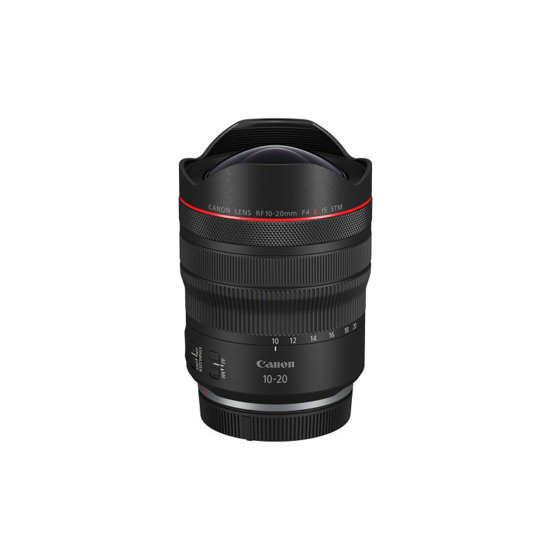 Canon RF 10-20mm F4 L IS STM. Componente per: MILC, Struttura lente: 16/12, Tipo di lente: Obiettivo con zoom grandangolare. Marche compatibili: Canon, Attuatore AF: STM, Colore dell'obiettivo: Nero. Colore del prodotto: Nero, Tipo di montaggio: Bayonet. Paese di origine: Giappone, Quantità per pacco: 1 pz, Numero di livelli per pallet: 4 pz. Diametro: 8,37 cm, Lunghezza: 112 mm, Peso: 570 g