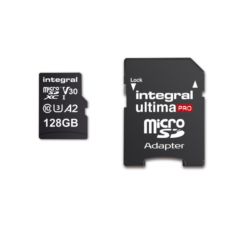 Integral 128GB MICRO SD CARD MICROSDXC UHS-1 U3 CL10 V30 A2 UP TO 170MB/s READ 130MB/s Write, 128 GB, MicroSDXC, Classe 10, UHS-I, 170 MB/s, 130 MB/s